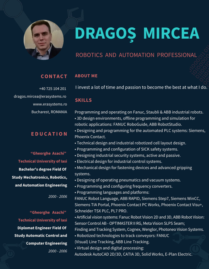 The short: Era Systems was founded by Dragos – Cristian MIRCEA, who changed his childhood passion for robots into a career.